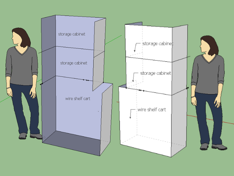 Also found these 2 drab looking wall cabinets at Kmart ($20/each) and ended up with this tech rack layout: