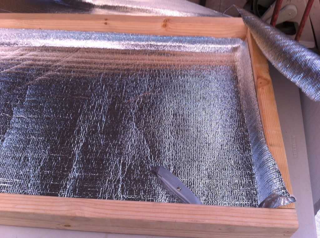 We have a good 10' of this aluminumy shiny shiny reflective underlayment leftover from installing our flooring in our house.